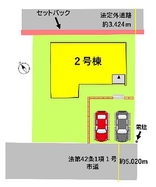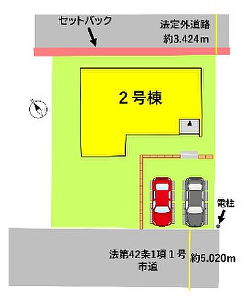 | 駐車場 | 2台 | 道路の幅員 | 南西側5.0m公道 |