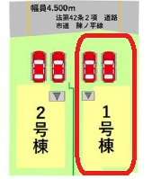 | 駐車場 | 2台 | 道路の幅員 | 北側4.5m公道 |