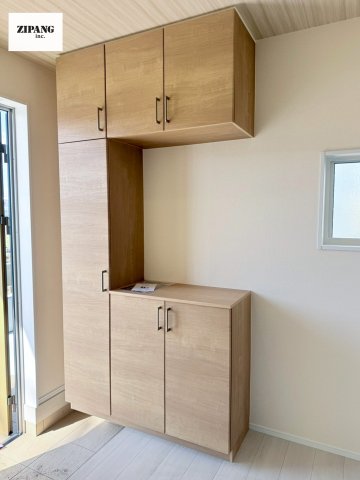 【玄関】明るい玄関。大容量の収納スペースは大家族でもらくらく収納可能です。