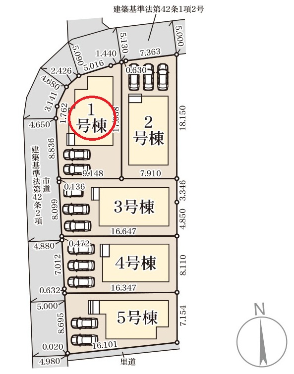 | 駐車場 | 2台 | 道路の幅員 | 北側5.0m公道 |