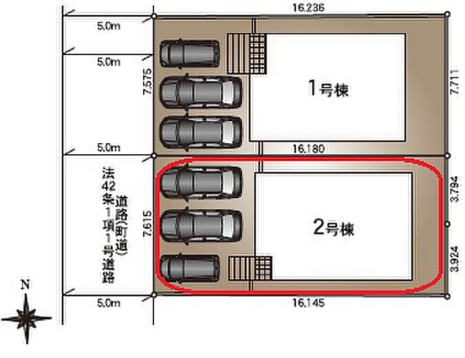 | 駐車場 | 3台 | 道路の幅員 | 西側5.0m公道 |