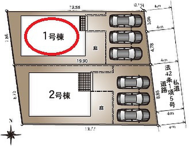 | 駐車場 | 3台 | 道路の幅員 | 東側4.0m私道 |