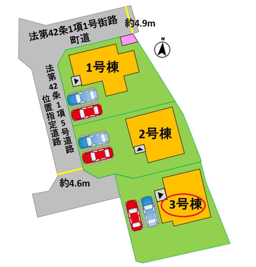 | 駐車場 | 2台 | 道路の幅員 | 西側4.5m私道 |