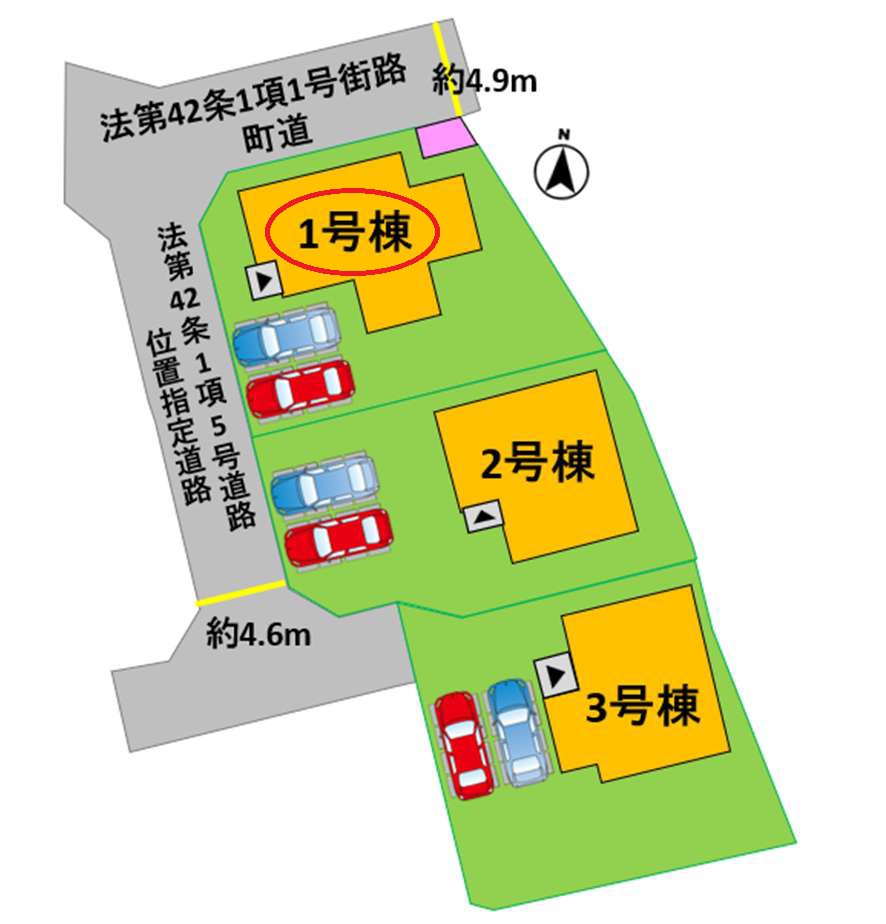 | 駐車場 | 2台 | 道路の幅員 | 北側4.9m公道 |