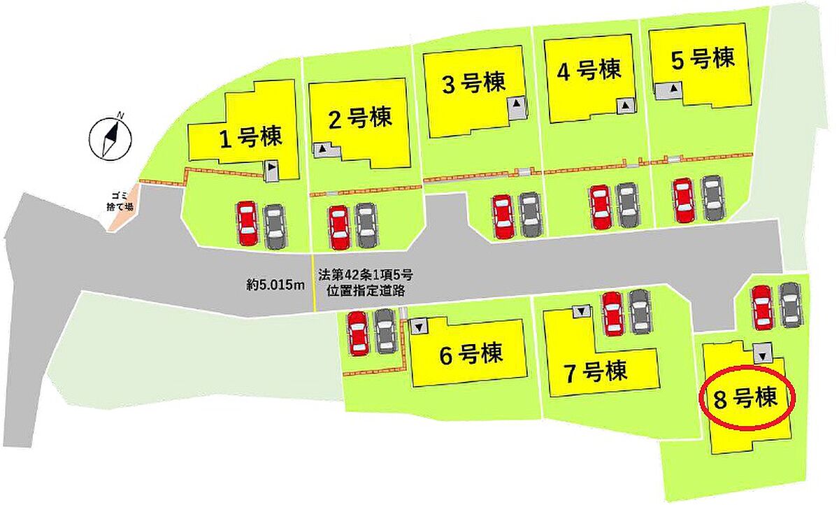 | 駐車場 | 2台 | 道路の幅員 | 北側5.0m私道 |
