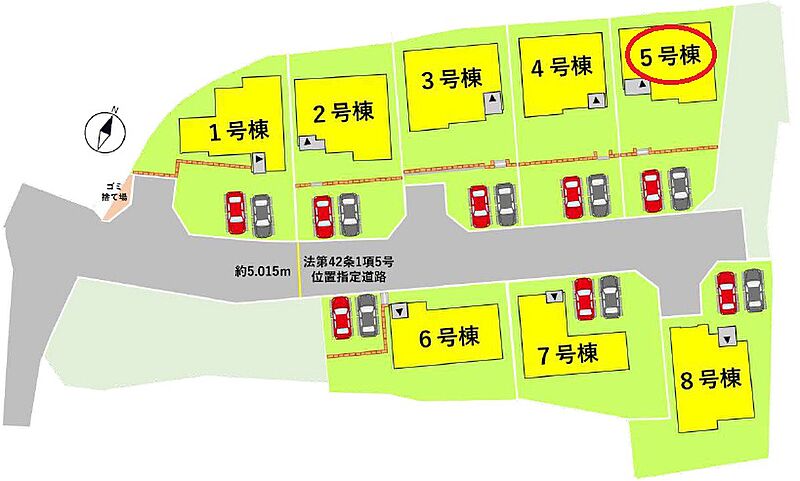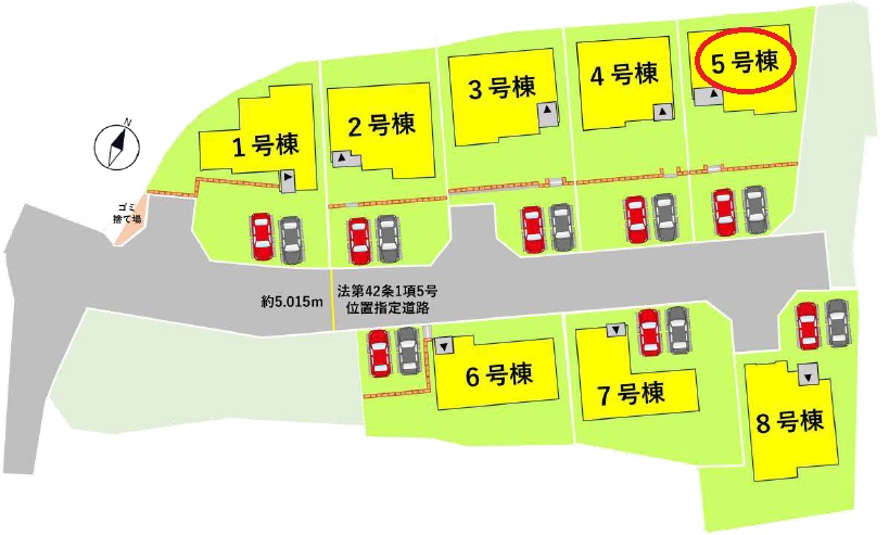 | 駐車場 | 2台 | 道路の幅員 | 南側5.0m私道 |