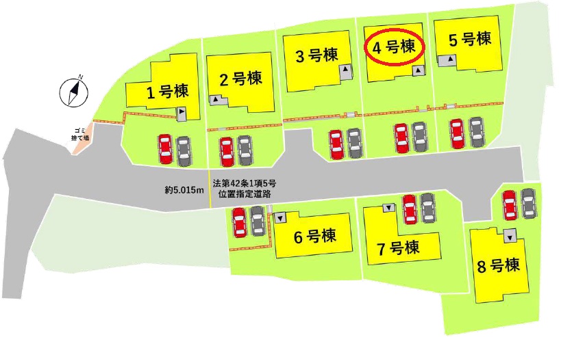 | 駐車場 | 2台 | 道路の幅員 | 南側5.0m私道 |