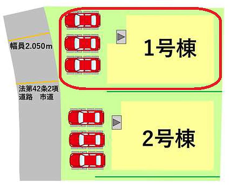 | 駐車場 | 3台 | 道路の幅員 | 北西側2.0m公道 |