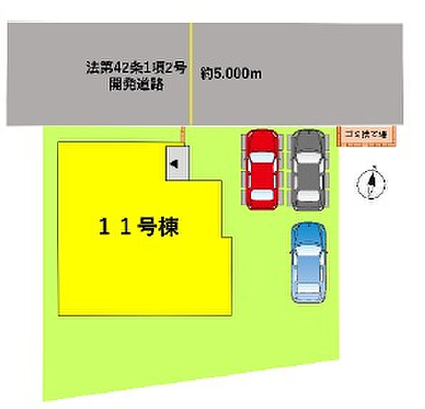 駐車場 3台 道路の幅員 北側5.0m公道