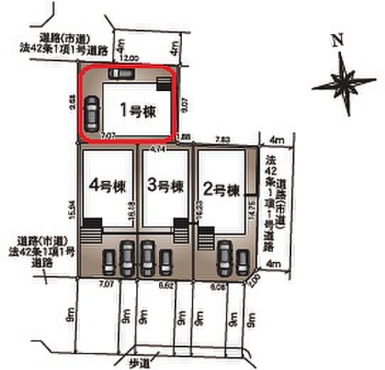 | 駐車場 | 2台 | 道路の幅員 | 北側4.0m公道 |