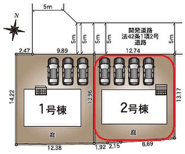 | 駐車場 | 4台 | 道路の幅員 | 北側5.0m公道 |