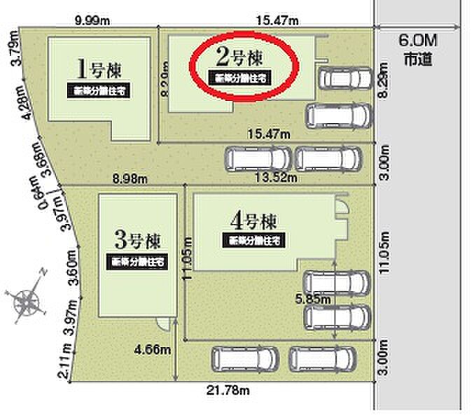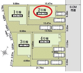 | 駐車場 | 2台 | 道路の幅員 | 東側6.0m公道 |
