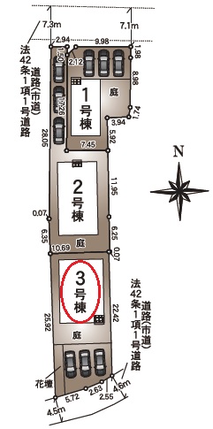 | 駐車場 | 3台 | 道路の幅員 | 南側4.5m公道 |