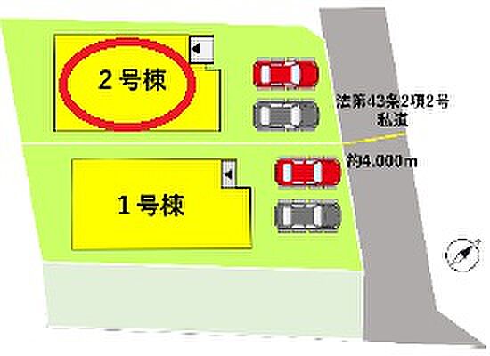 | 駐車場 | 2台 | 道路の幅員 | 北側4.0m私道 |