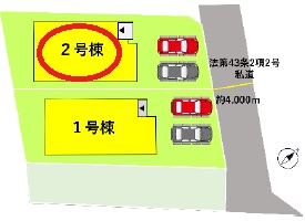 | 駐車場 | 2台 | 道路の幅員 | 北側4.0m私道 |