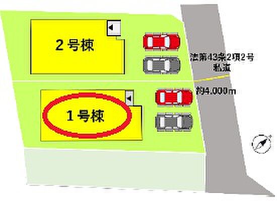 | 駐車場 | 2台 | 道路の幅員 | 北側4.0m私道 |