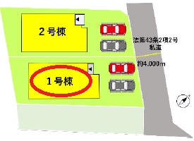 | 駐車場 | 2台 | 道路の幅員 | 北側4.0m私道 |