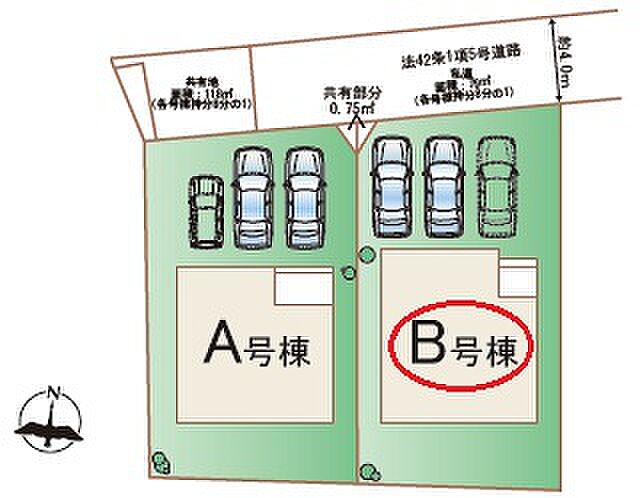 | 駐車場 | 3台 | 道路の幅員 | 北側4.0m私道 |