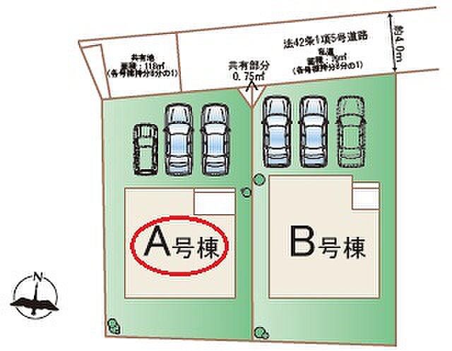 | 駐車場 | 3台 | 道路の幅員 | 北側4.0m私道 |