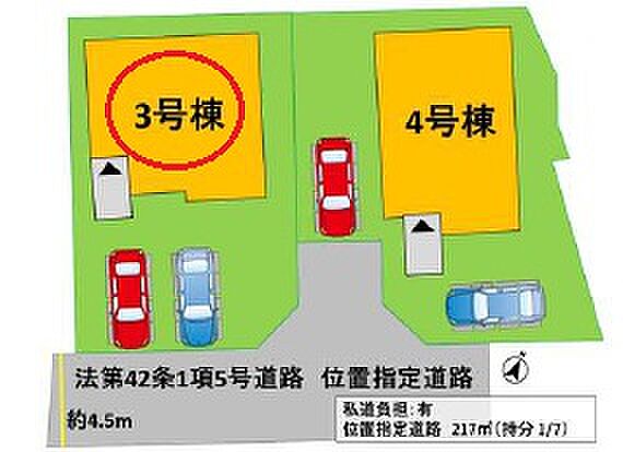 | 駐車場 | 2台 | 道路の幅員 | 南側4.5m私道 |