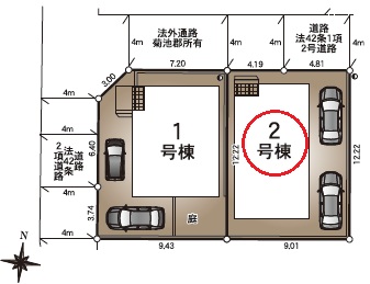 | 駐車場 | 2台 | 道路の幅員 | 北側4.0m公道 |