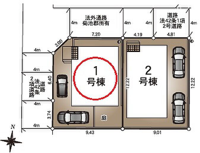 | 駐車場 | 2台 | 道路の幅員 | 西側4.0m公道 |