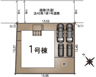 | 駐車場 | 4台 | 道路の幅員 | 北東側6.0m公道 |