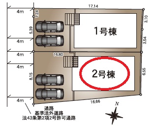 | 駐車場 | 2台 | 道路の幅員 | 西側4.0m公道 |