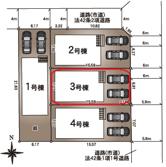 | 駐車場 | 2台 | 道路の幅員 | 東側6.0m公道 |