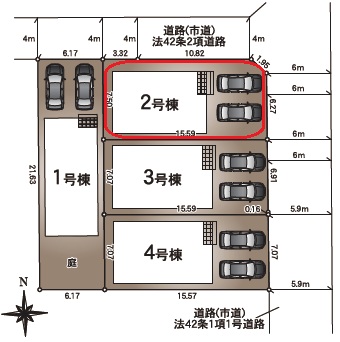 | 駐車場 | 2台 | 道路の幅員 | 北側4.0m公道 |
