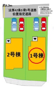 | 駐車場 | 2台 | 道路の幅員 | 北西側4.2m私道 |