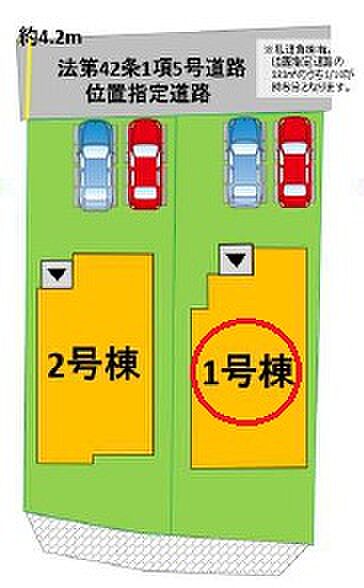 | 駐車場 | 2台 | 道路の幅員 | 北西側4.2m私道 |