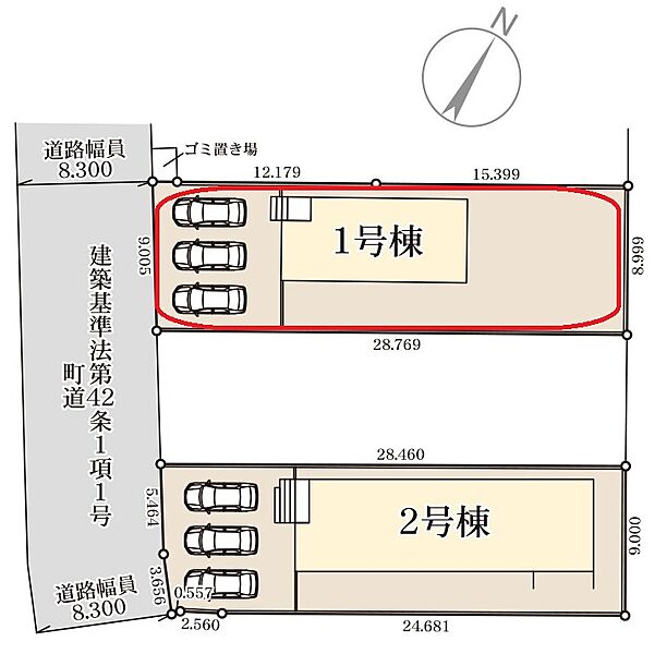 | 駐車場 | 3台 | 道路の幅員 | 西側8.3m公道 |