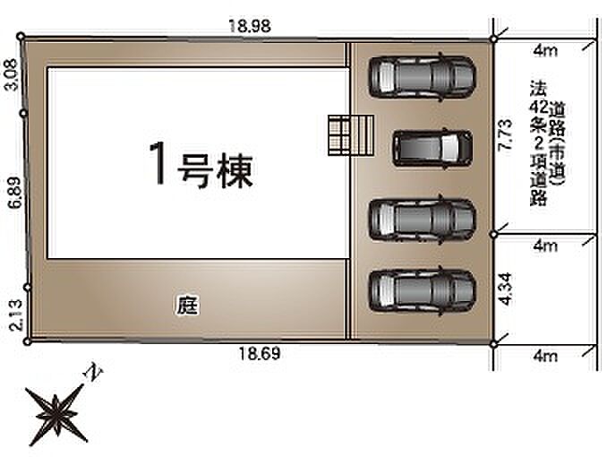 | 駐車場 | 4台 | 道路の幅員 | 北東側4.0m公道 |