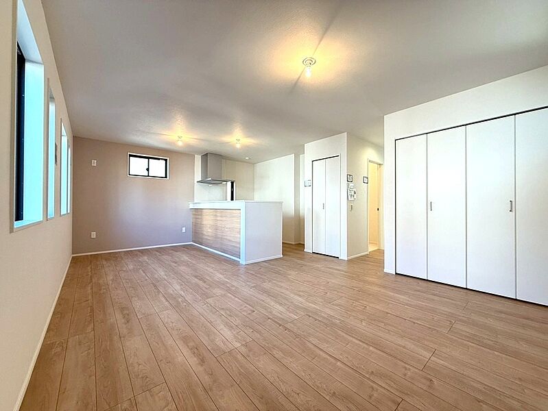 暮らしの中心となるLDKは17.6帖を確保、同フロアに水廻りを集約させる事で一日の家事動線がとても便利になります。無駄な廊下スペースを最小限にする事で、ゆとりの居住空間を演出した設計となっております。