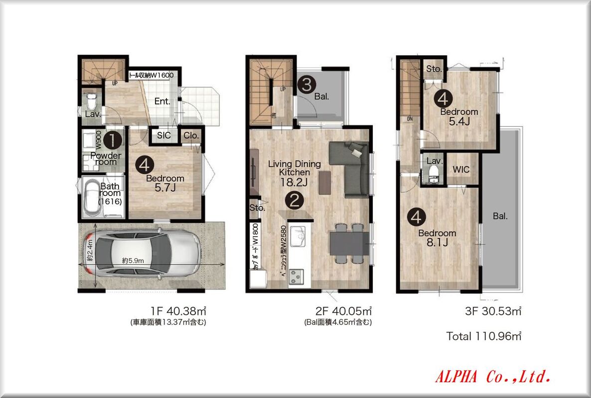 | 建物面積 | 110.96m2 | 土地面積 | 62.50m2 |