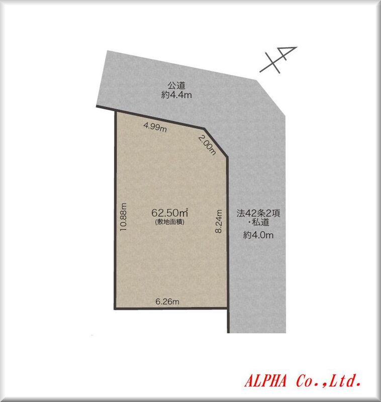 | 駐車場 | 有り (1台) | 道路の幅員 | 北側約4.4m(公道) 東側約4.0m(私道) |