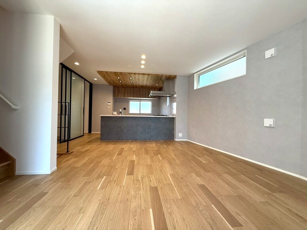 暮らしの中心となるLDKは18.2帖を確保、リビング続きにワイドバルコニーを配する事で開放感を演出しております。階段とリビングフロアの間に扉を設置する事で熱効率も良く、夏冬共に快適にお過ごし頂けます。