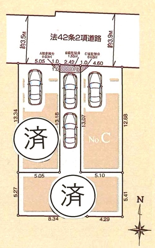 | 駐車場 | 有り (1台) | 道路の幅員 | 北側約3.9m (公道) |