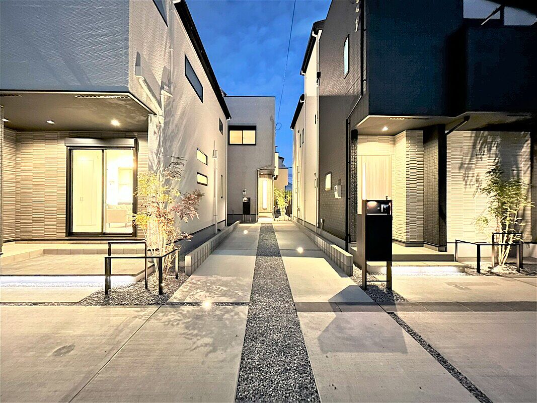 夜間用照明と洗練された外構デザインが織りなす空間はおしゃれその...