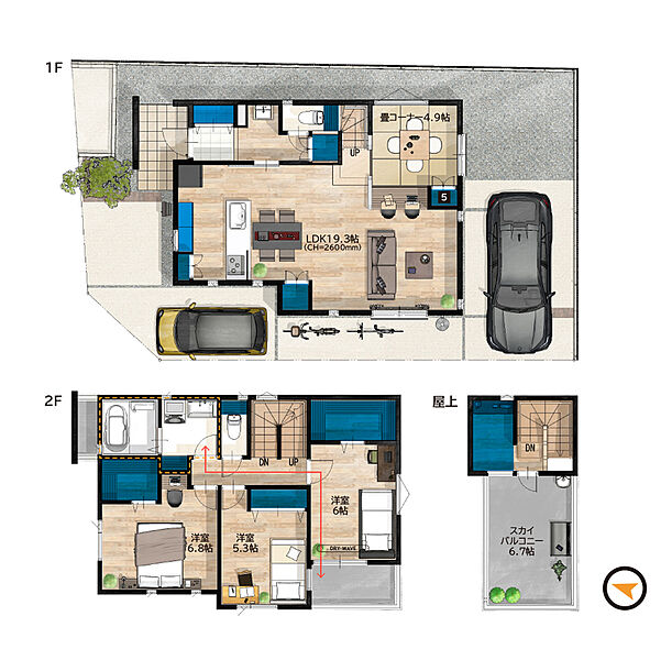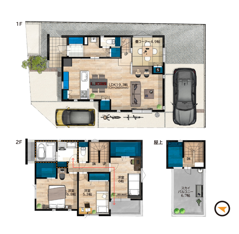 - ※完成予想図やCG合成画像は、門塀・植栽・庭・外観等、実際とは多少異なる場合があります。