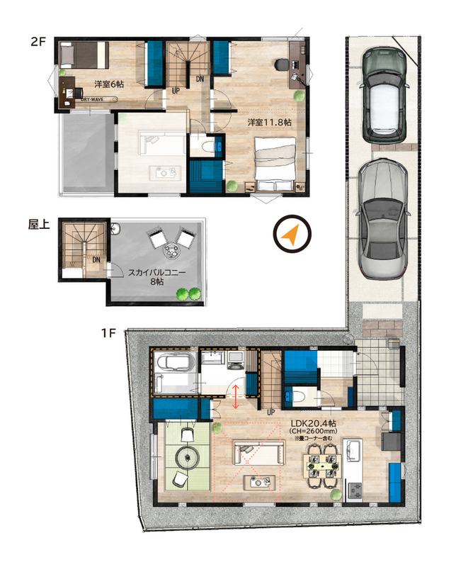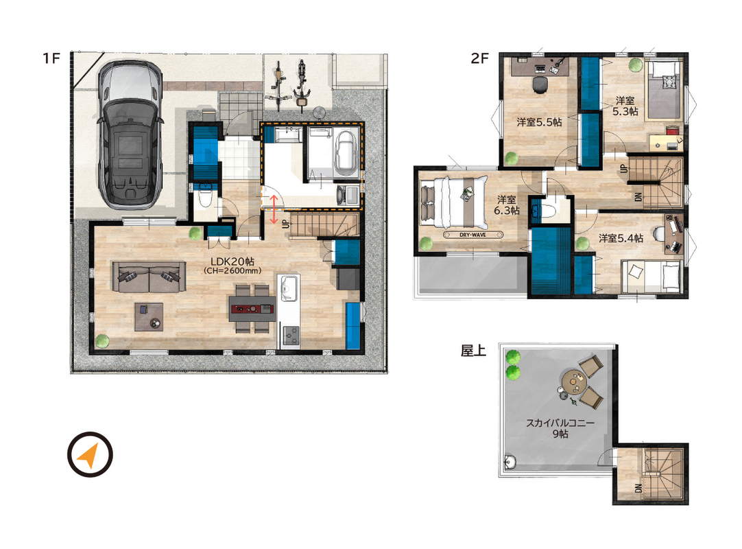 - ※完成予想図やCG合成画像は、門塀・植栽・庭・外観等、実際とは多少異なる場合があります。