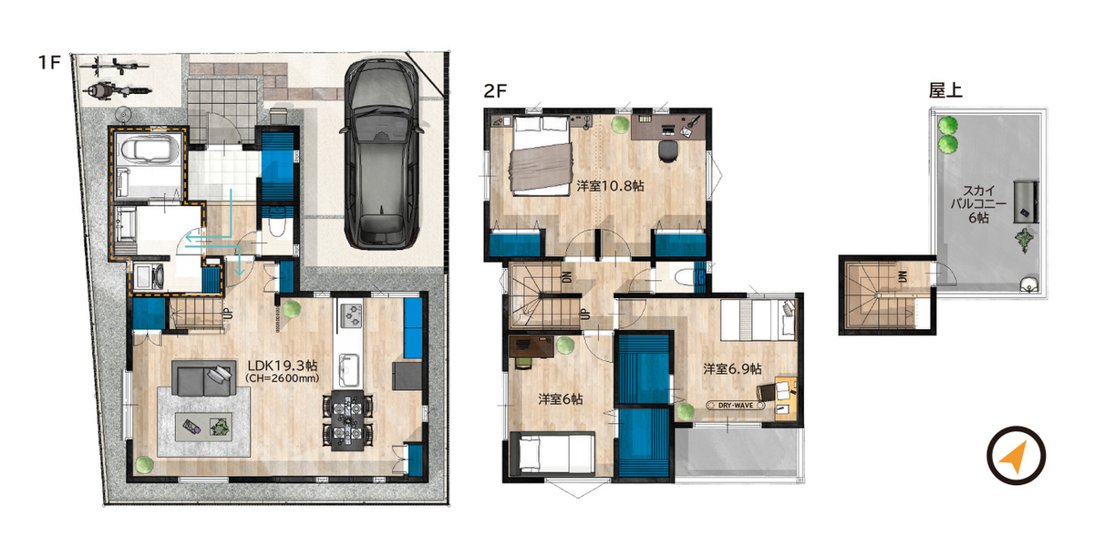魅力3 【全棟屋上付き】屋上バルコニー付きの贅沢な暮らしをご体感ください♪