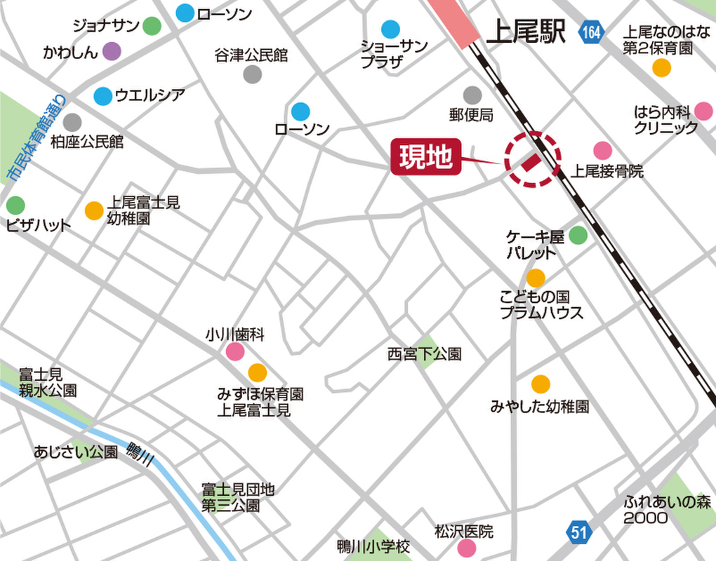 JR高崎線「上尾」駅 徒歩6分 湘南新宿ライン高海「上尾」駅 徒歩6分 JR京浜東北・根岸線「大宮」駅 車で約8.6km |