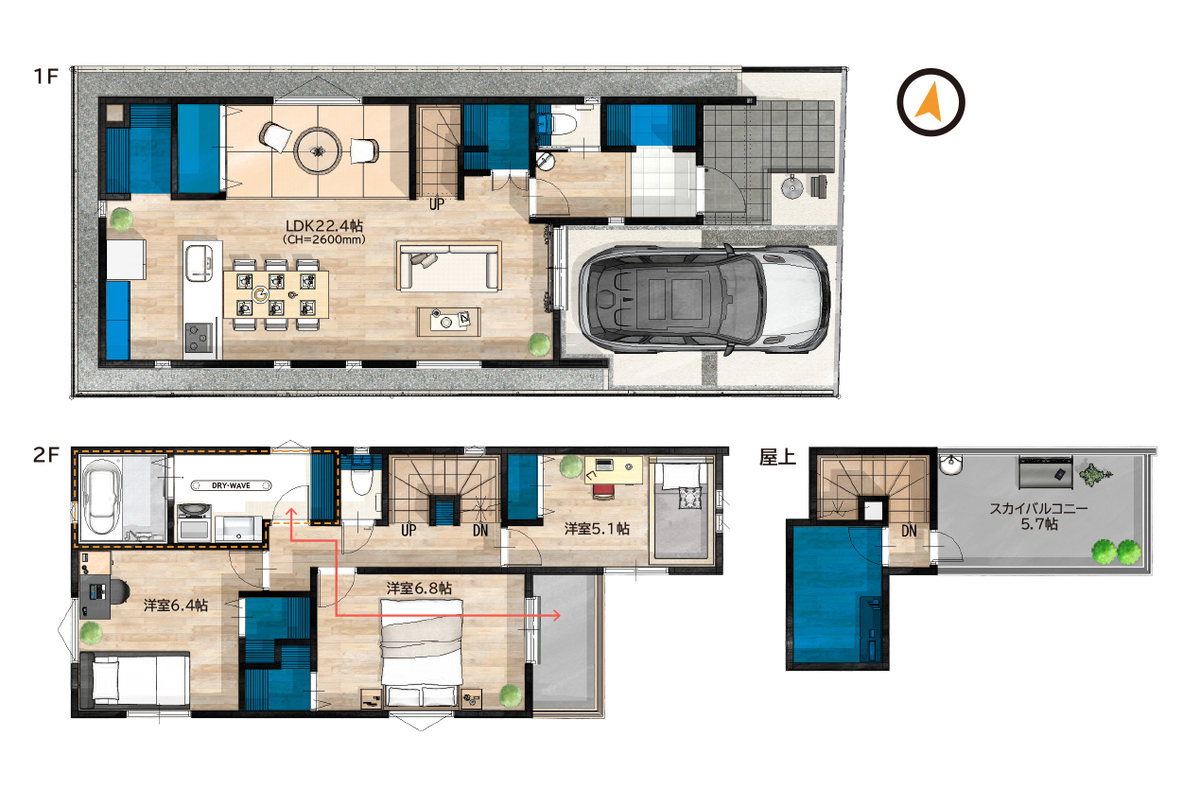 魅力3 【全棟屋上付き】屋上バルコニー付きの贅沢な暮らしをご体感ください♪