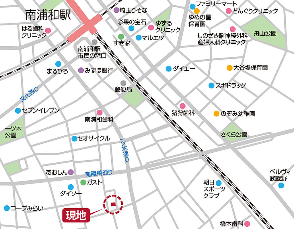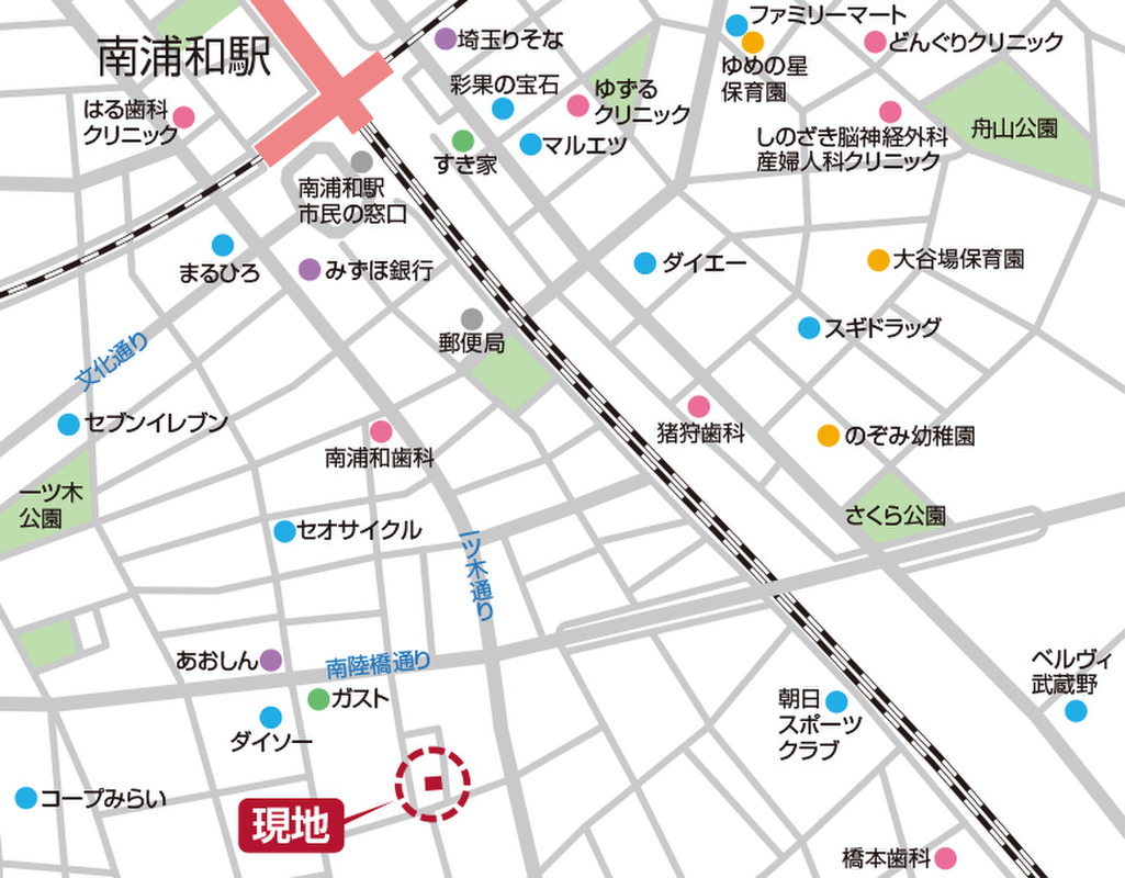 JR京浜東北・根岸線「南浦和」駅 徒歩9分 JR武蔵野線「南浦和」駅 徒歩9分 JR京浜東北・根岸線「浦和」駅 徒歩35分 |