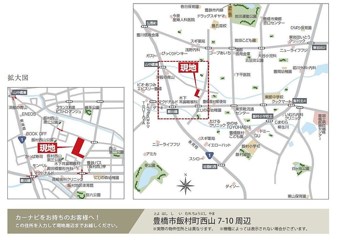 - ※地図、航空写真情報および地形ならびに周辺のお店・施設は、必ずしも現況を表すものではありません。