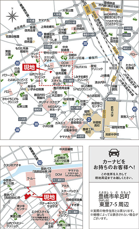 - ※地図、航空写真情報および地形ならびに周辺のお店・施設は、必ずしも現況を表すものではありません。