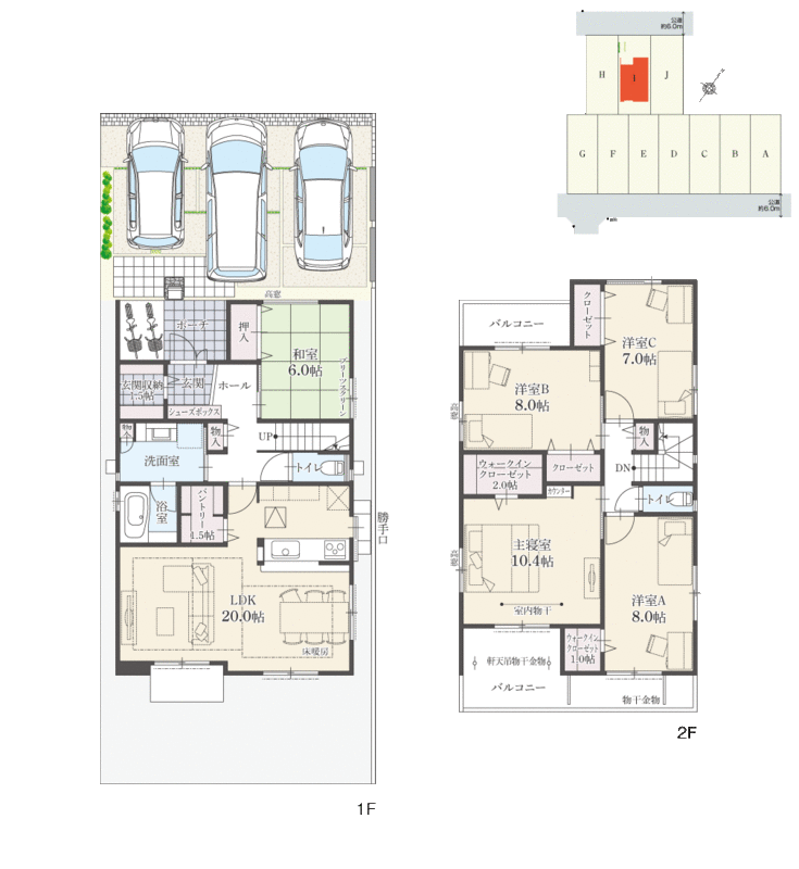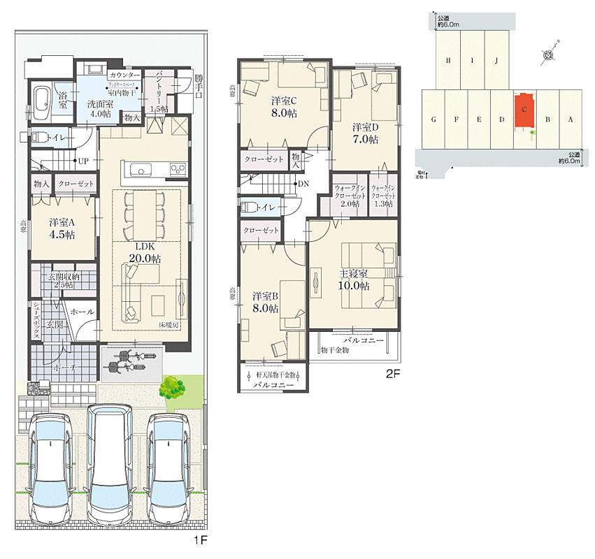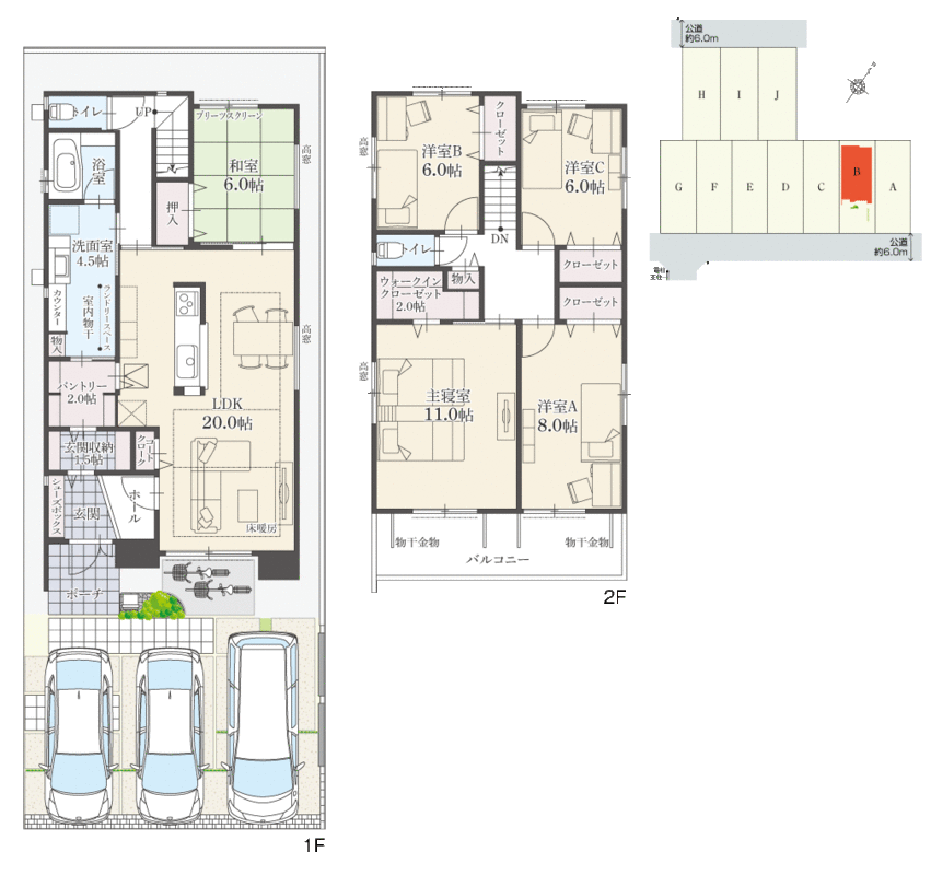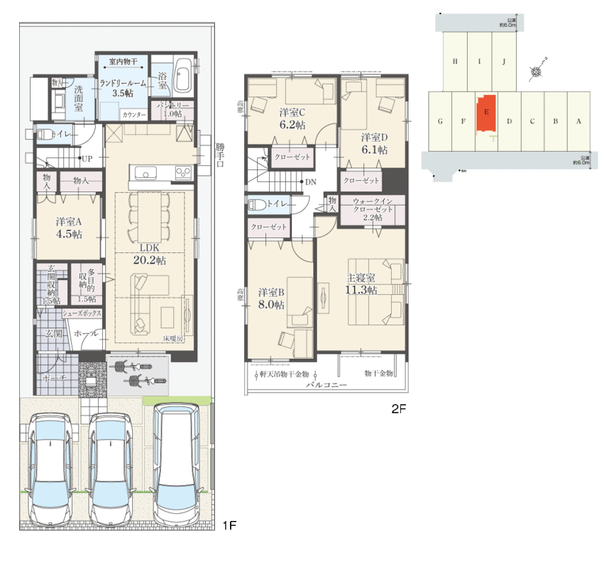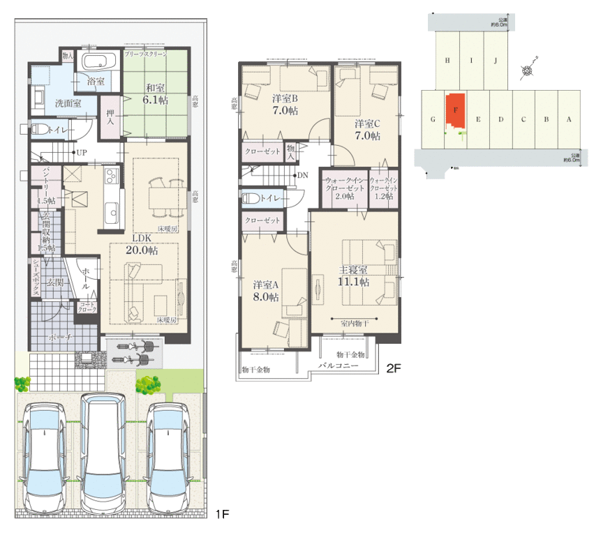耐震等級3・長期優良住宅・敷地46坪以上・南東側接道(A棟~G棟)・駐車3台可能