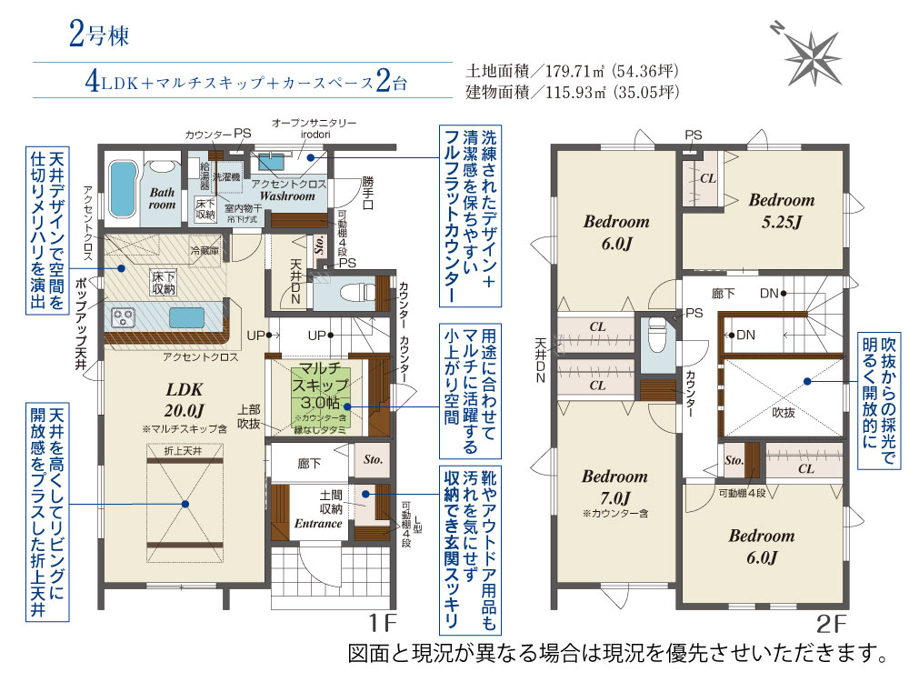 | 建物面積 | 110.54m2(約33.43坪)~115.93m2(約35.06坪) | 土地面積 | 179.71m2(約54.36坪)~179.86m2(約54.40坪) |